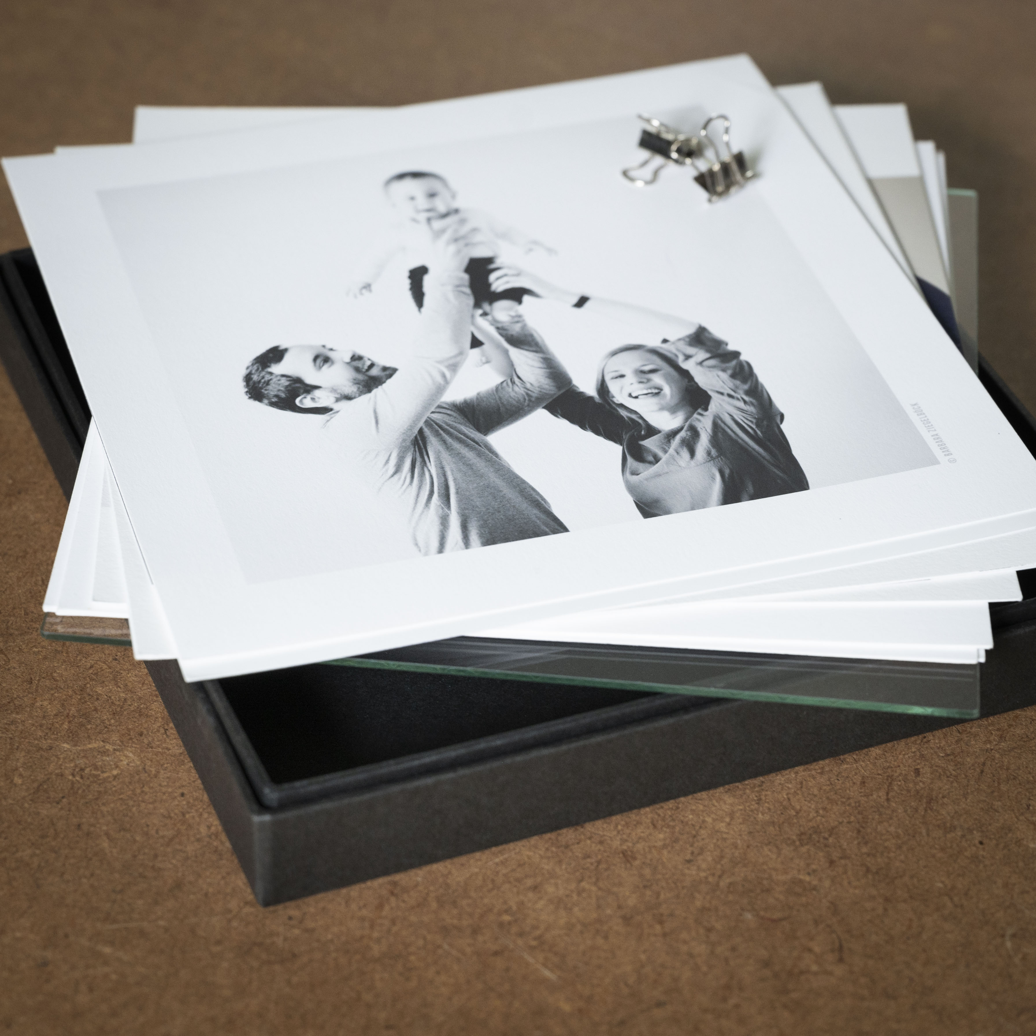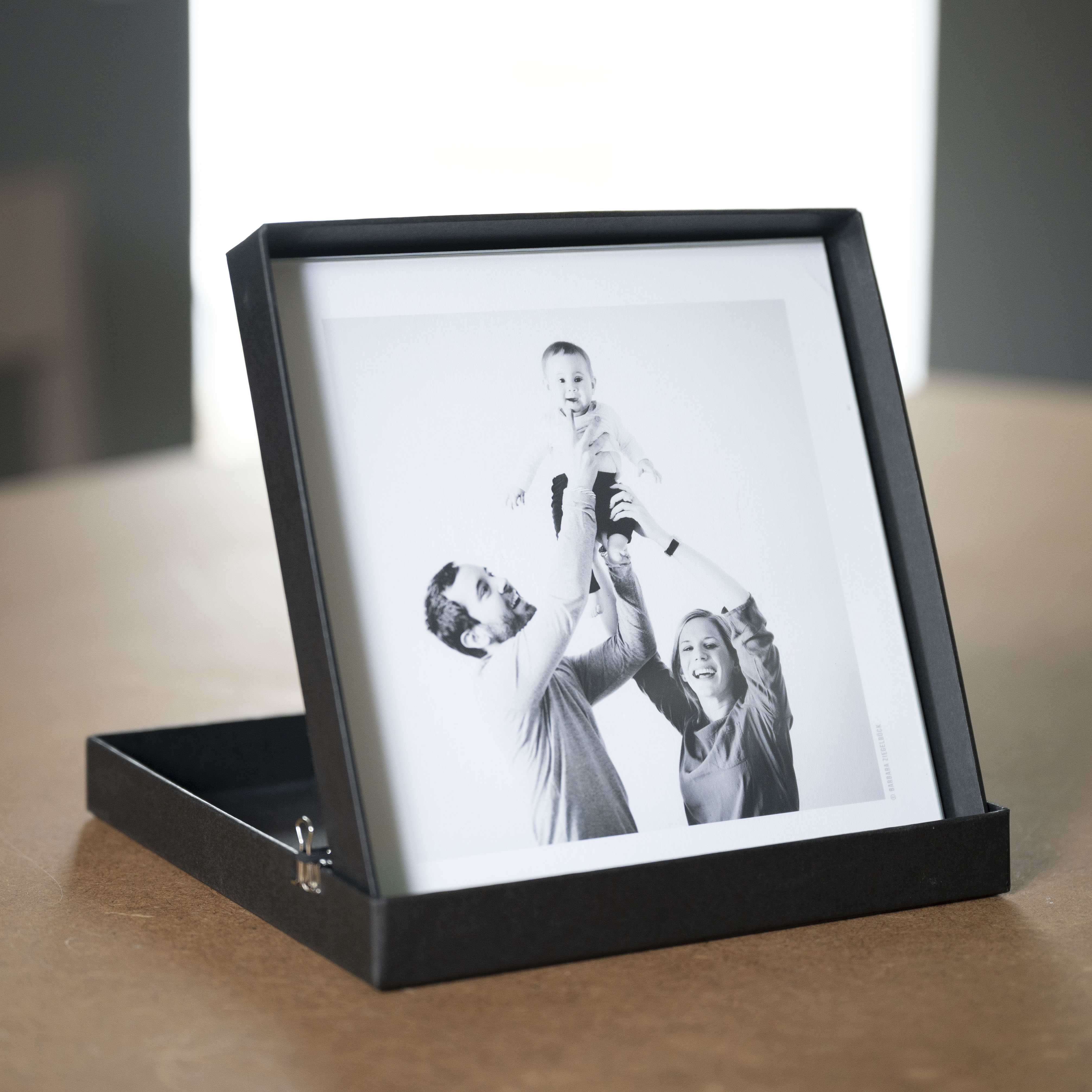Ein echtes Highlight, meine Foliobox: Die Bilder liegen hinter Glas – zusammen und doch lose – in der Box. Und können daher rasch und unkompliziert gewechselt werden. Die Box ist handgefertigt von Promente OÖ.